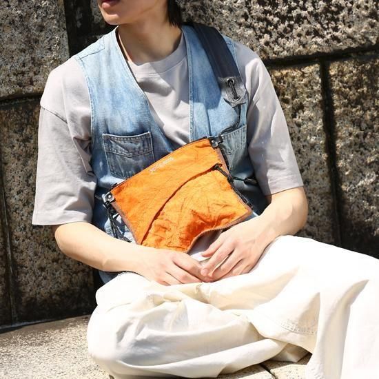 手の角度に合わせた"斜めポケット"は、フェスで踊っても小銭が落ちないように、ファスナーを付けました。