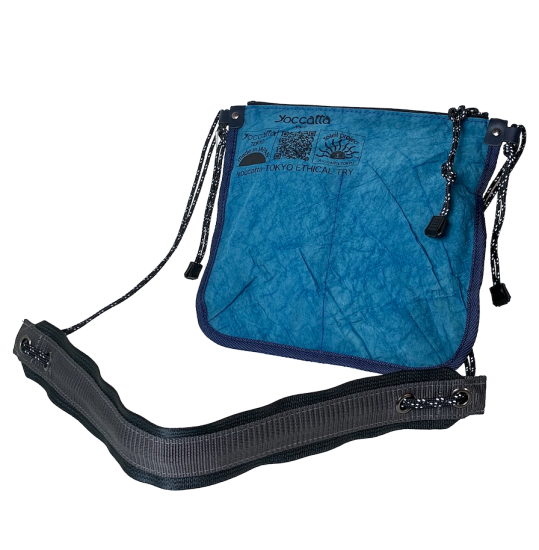 とても軽いyoccattaのサコッシュは、シートベルトを利用した"パッド"が付いていて、